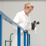 可燃性液体のサンプルを採取する場合は、装置を接地する必要があります。そのためにはアースケーブルと、場合によっては静電気防止セットを使用する必要があります。
