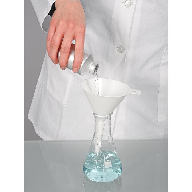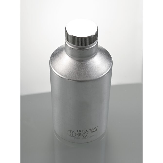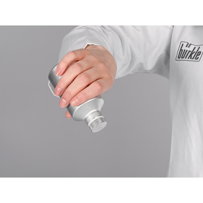 Dzięki matowemu, srebrnemu wykończeniu wewnątrz i na zewnątrz, butelki transportowe są odporne na działanie szerokiej gamy chemikaliów i nie przedostają się do zawartości, zapewniając czystość przechowywanego produktu.