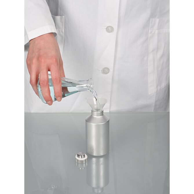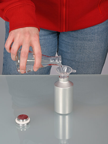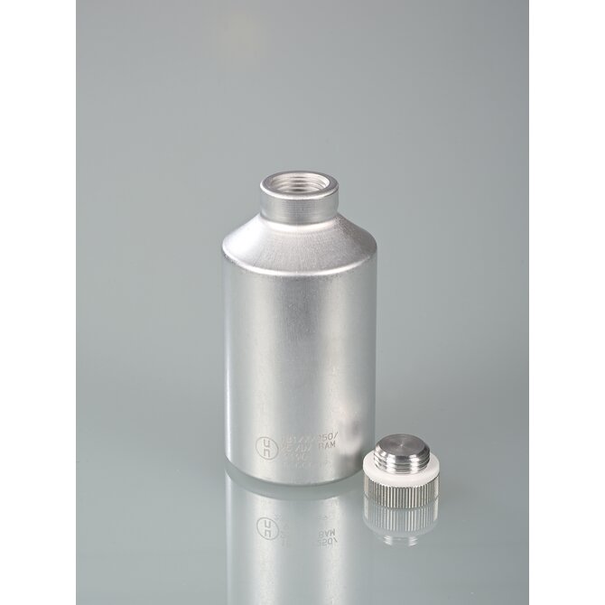 Praktyczne butelki transportowe są wykonane z wytrzymałego czystego aluminium (AL 99,5) i mają zakrętkę oraz solidny gwint wewnętrzny zapewniający bezpieczne i szczelne zamknięcie.