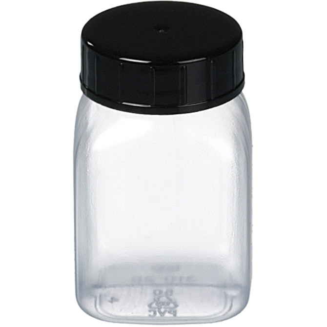 - Słoik z szerokim otworem, kwadratowy, z PVC i czarną zakrętką z piankową wkładką