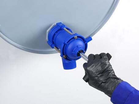 Torneira com torneira para rosca de barril R 2", fluxo de 50 mm, para meios viscosos como vernizes, cola, xampu.