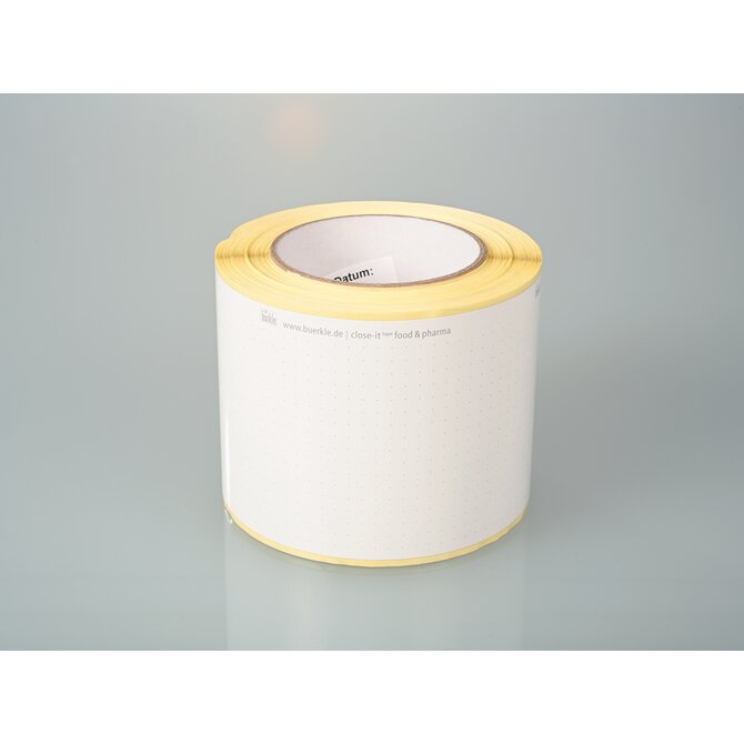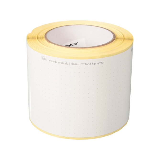 Para uso universal, mantivemos a fita adesiva close-it tape na cor branca com linhas de corte. Ela pode ser etiquetada com tinta permanente e é à prova de gás. Disponível no design clássico da close-it, bem como na fita close-it food & pamp; pharma, com um adesivo compatível com alimentos.
