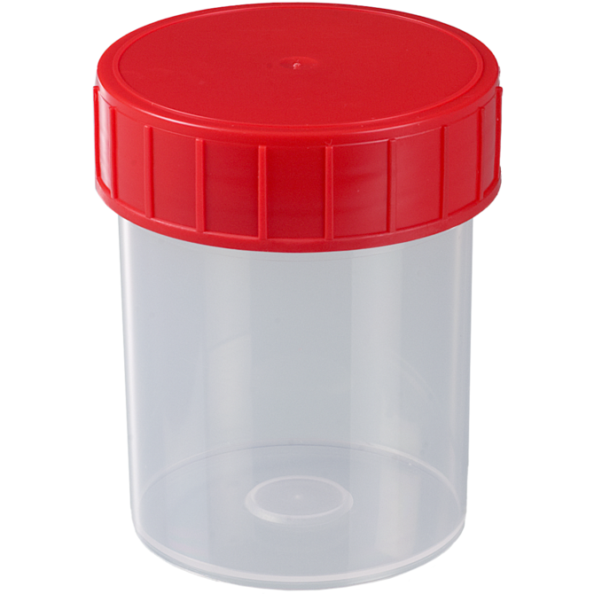 Caixa de amostras com tampa de rosca. Ideal para coleta e transporte de amostras. Esvaziamento sem resíduos porque não há fendas.