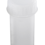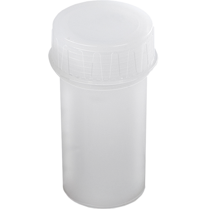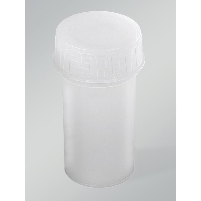 Caixa de amostras com tampa de rosca. Ideal para coleta de amostras e transporte. Esvaziamento sem resíduos porque não há fendas.