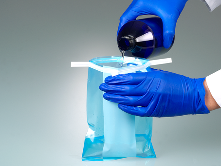 Graças à grande abertura, o SteriBag Blue pode ser enchido facilmente. O saco de amostras com campo de rotulagem ocupa pouco espaço, é fácil de transportar e à prova de vazamentos.