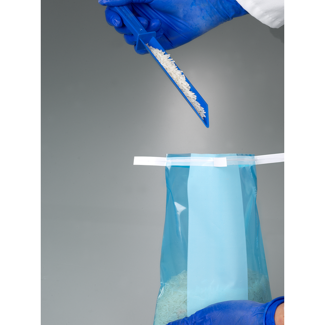 O saco de amostragem estéril SteriBag Blue é especialmente adequado para uso nos setores de alimentos, ração animal e farmacêutico. Para evitar o perigo de materiais estranhos na produção, os sacos de amostragem e o fecho destacável são de cor azul. Essa tonalidade de azul não ocorre de forma natural nos alimentos. Por isso, ele é altamente visível e pode ser descoberto de forma confiável em uma verificação visual se um saco ou partes dele forem misturados na produção.