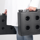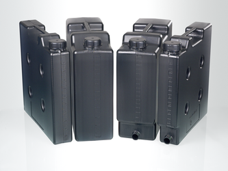 O recipiente, que ocupa pouco espaço, é feito de plástico PE antiestático, que não enferruja e é fácil de descartar por meio do sistema de reciclagem. O recipiente oferece excelente resistência química e pode ser preenchido com uma ampla variedade de líquidos e produtos químicos.