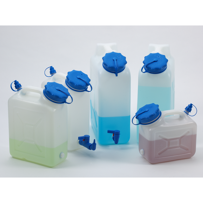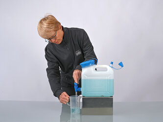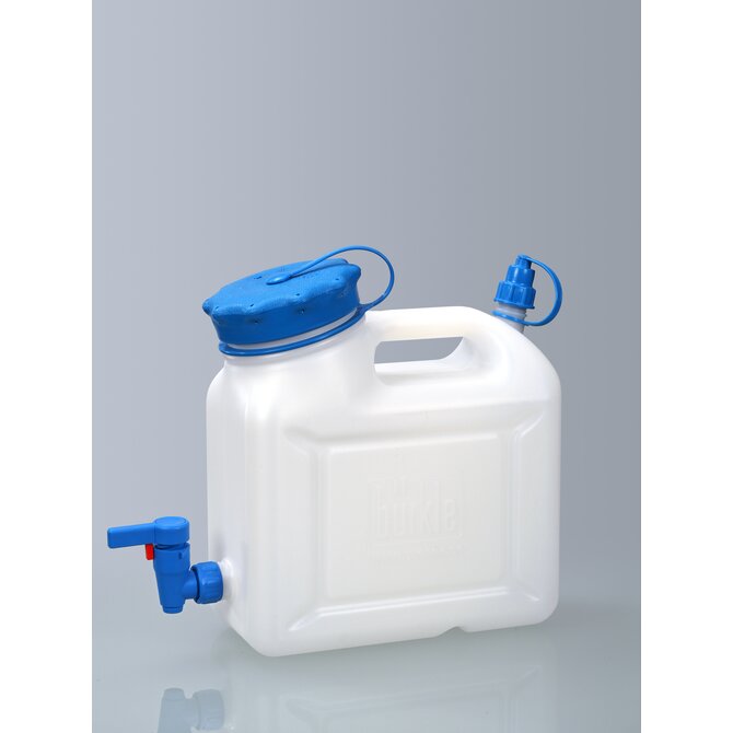 A funcionalidade do recipiente é aprimorada ainda mais com a adição de um pequeno bico de despejo de 18 mm de diâmetro e um prático bico de despejo. Esse bico de ventilação e vazamento permite a remoção precisa e controlada de pequenas quantidades de líquido e pode ser usado para ventilação durante o enchimento.