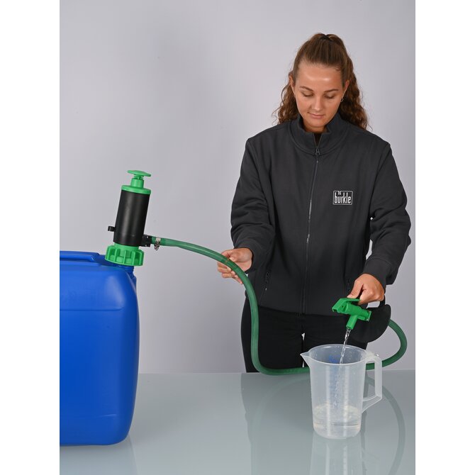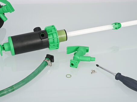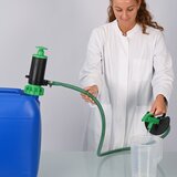 - Mangueira de descarga com válvula de fecho para PumpMaster para ácidos e líquidos químicos