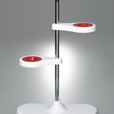 O suporte de laboratório pode ser adaptado de forma flexível com os acessórios correspondentes, por exemplo, com suportes de funil de ajuste ou um suporte para funis Imhoff. O suporte para funis também pode ser convertido num suporte para pipetas.