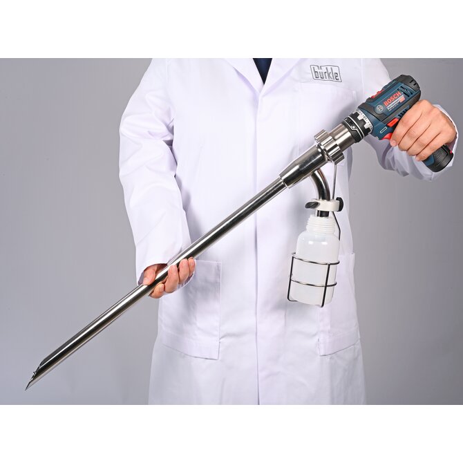 Como acessório do sistema PowderProof®, o cesto para garrafas permite que uma garrafa de amostra seja ligada diretamente à lança de amostragem PowderProof®. Isto permite que o material de amostra seja transportado diretamente para uma garrafa de amostra adequada. O design robusto garante um manuseamento seguro e permite uma fácil fixação à unidade de acionamento. O cesto para garrafas PowderProof® foi especialmente concebido para a recolha móvel de amostras de pós e grânulos.