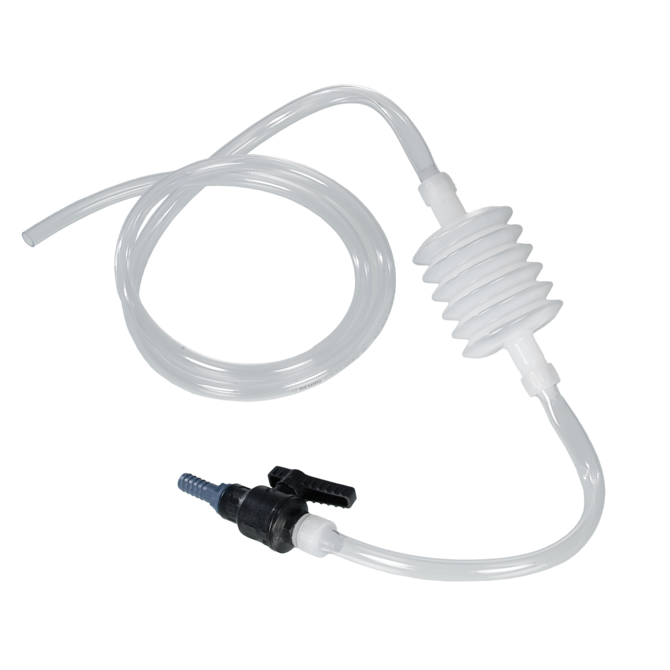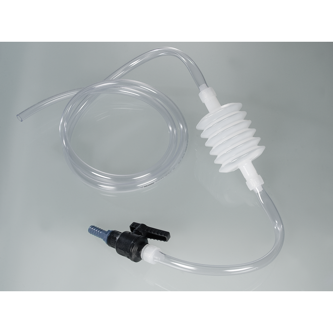 Funciona de acordo com o princípio do sifão: O líquido só precisa de ser escorvado uma vez, pelo que é especialmente útil para o esvaziamento completo de um recipiente.