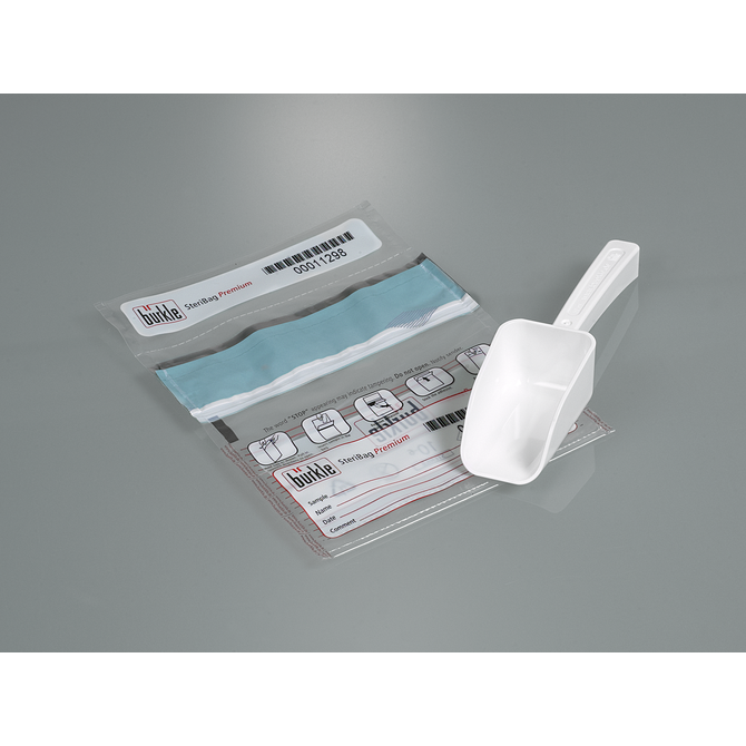 The scoops are clean room manufactured and individually packed. The sample bag SteriBag Premium has an integrated sealing and is liquid-tight. A unique tracking code on both the bag and the tear-off field guarantees complete documentation and traceability.