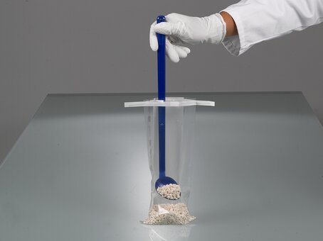 Широкое отверстие одноразовой воронки для порошков предотвращает образование засоров из порошка или гранул во время наполнения. Поэтому это практичное и гигиеничное приспособление для перемещения материалов представляет собой полезный аксессуар как при отборе проб, так и при работе в лаборатории.
