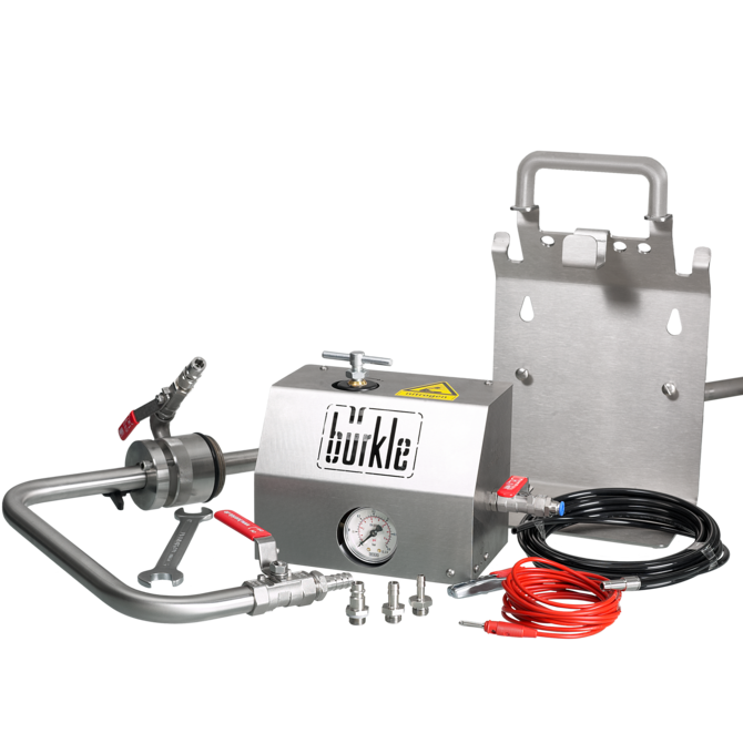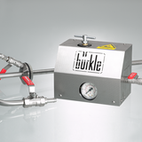 便携式分配系统可以灵活工作。它由一个桶泵和一个悬挂式压力控制装置组成,可调节入口压力并提供额外的安全保护,防止操作人员出错。通过压力表可以直观地控制入口压力。